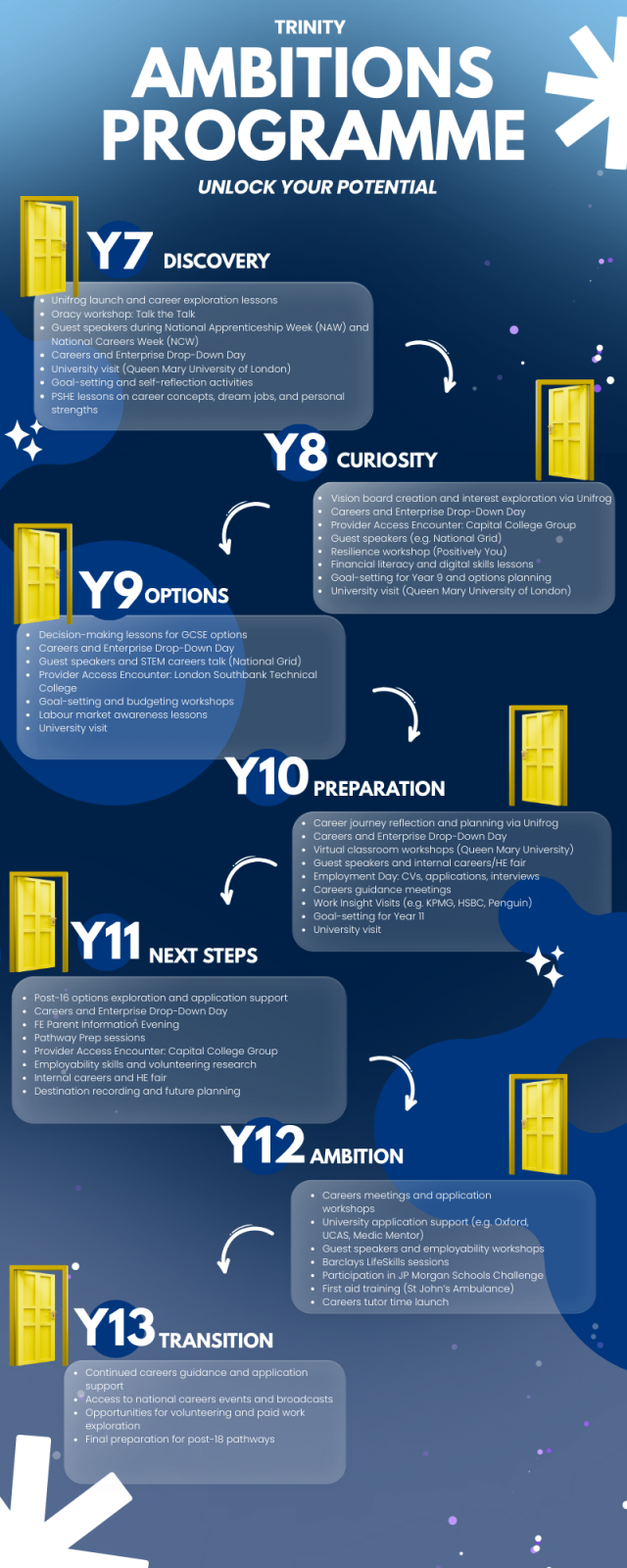 All students at Trinity Academy follow the Trinity Ambitions Programme, a structured Careers journey from Year 7 to Year 13.